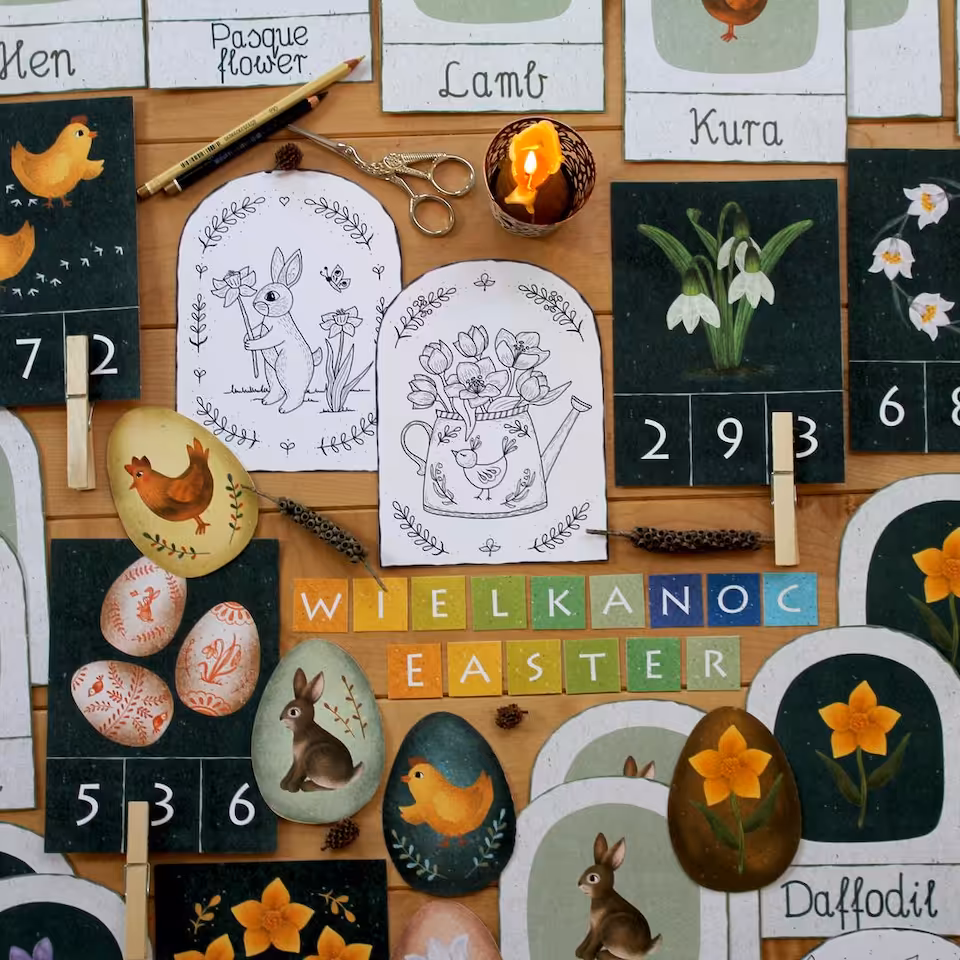 Makieta aktywizująca do zabawy i nauki dla dzieci. Wydrukuj, złóż i baw się razem z dzieckiem. Materiały opracowane w tematyce wiosenno-wielkanocnej, zostały wydane w formie pięknych i niepowtarzalnych ilustracji ♥.
