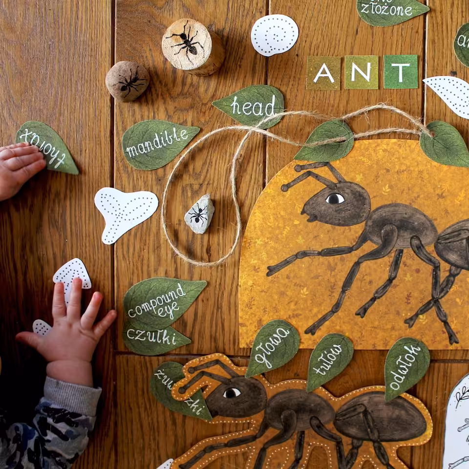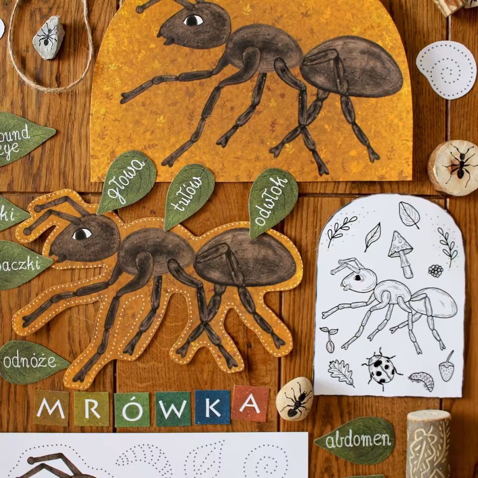 Makieta aktywizująca do zabawy i nauki dla dzieci. Wydrukuj i baw się razem z dzieckiem. Anatomia Mrówki. Flora i Fauna Montessori ♥. Pomoce edukacyjne inspirowana naturą ❀.