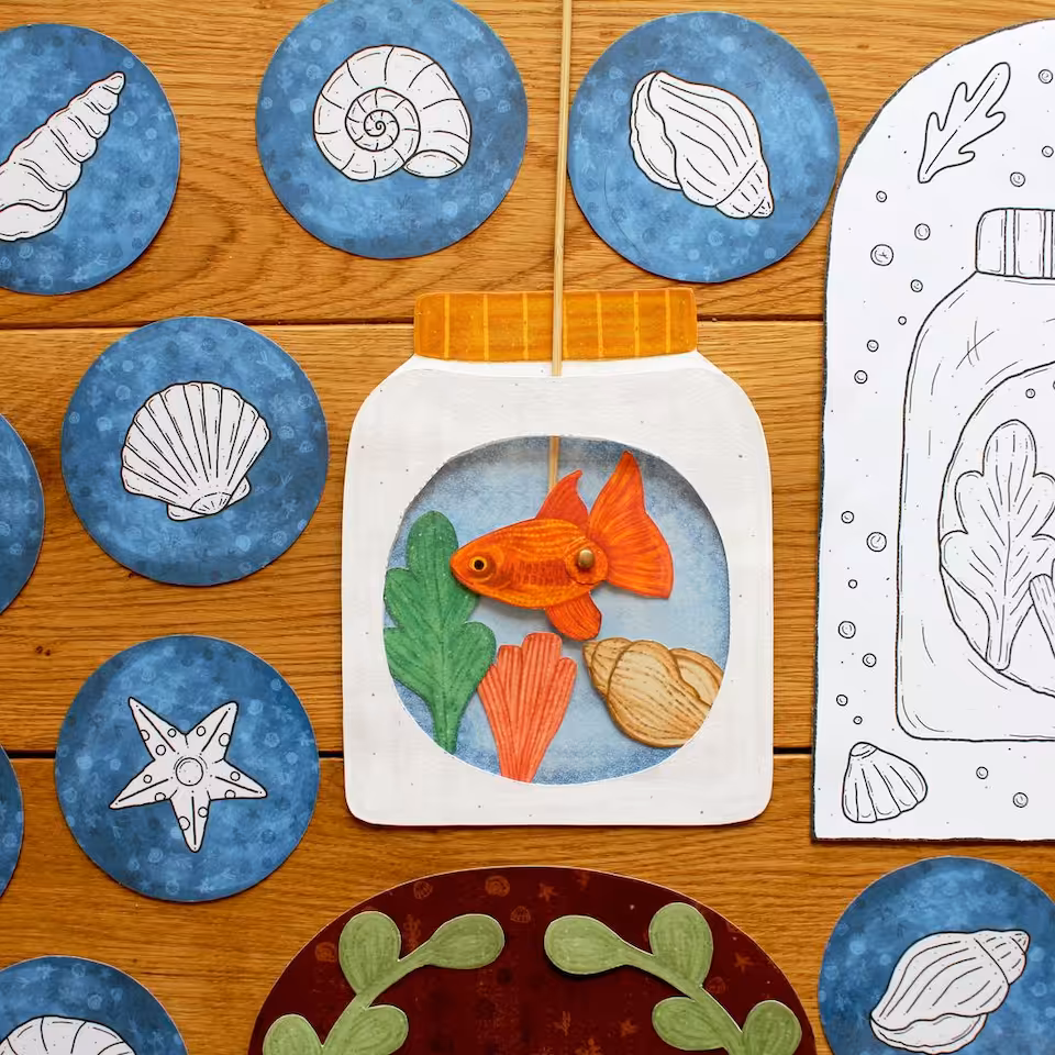 ♡ mini złota rybka do wycięcia, stworzysz ruchomy ogon, aktywna zabawka do zabawy w MORZE W SŁOIKU