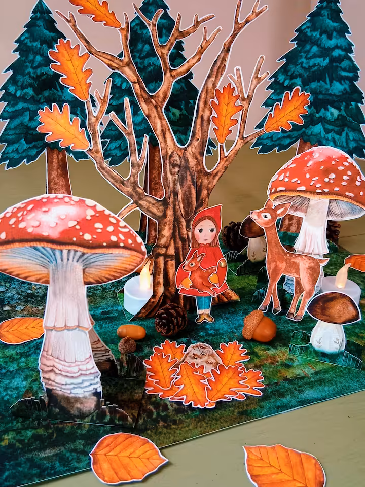 Akwarelowa, jesienna plansza przedstawiająca magiczny las — idealna baza do tworzenia Waszej historii.