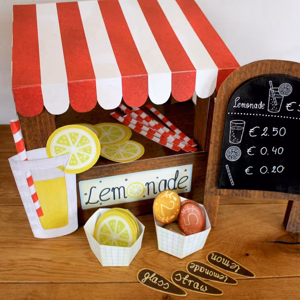 Letnie aktywności dla dzieci. Stragan z lemoniadą. Nauka przez zabawę w słonecznym klimacie. Wydrukuj i baw się razem z dzieckiem. Pomoce edukacyjne rozwijające kreatywność i zmysły. Nauka angielskiego poprzez zabawę ❀.