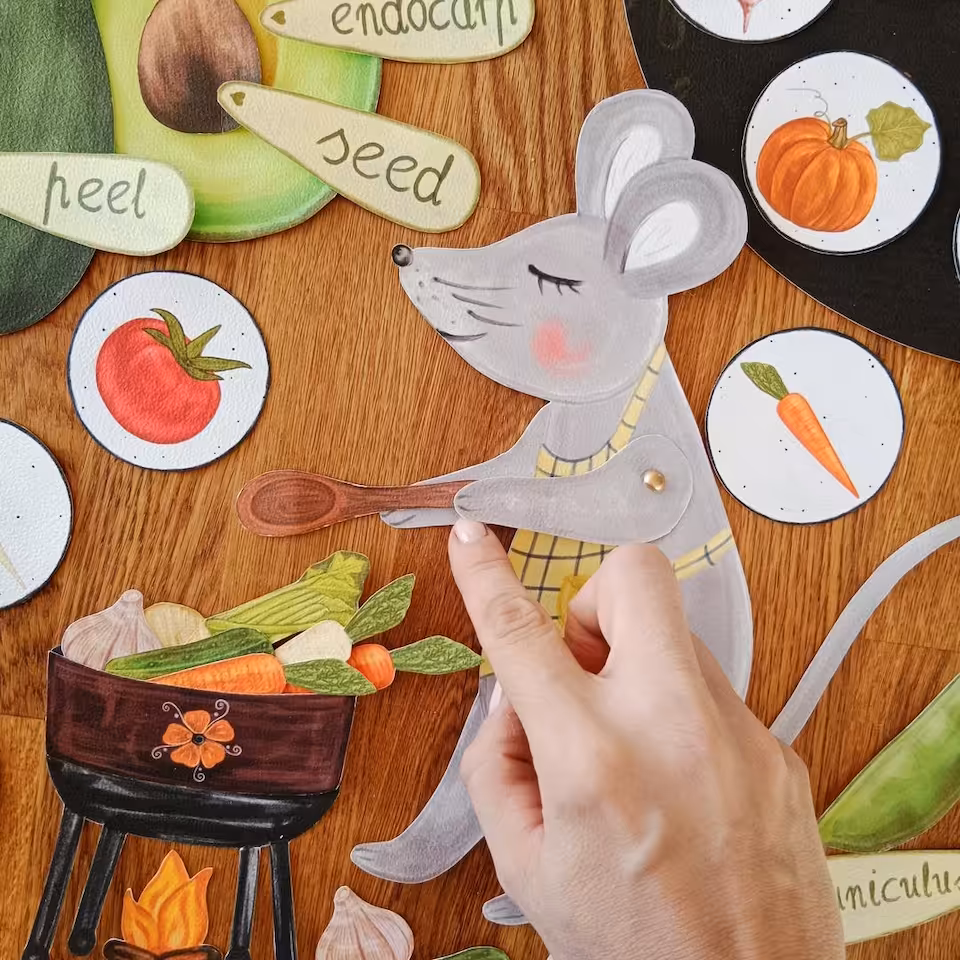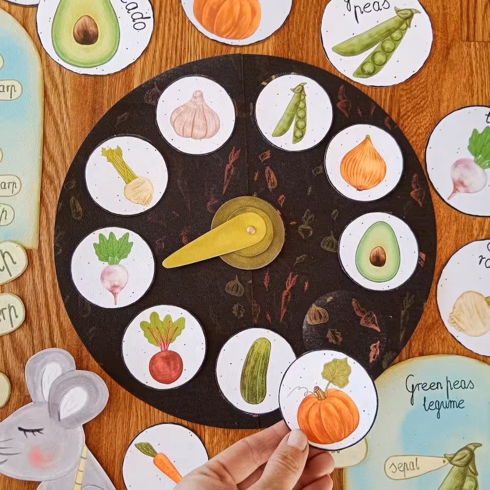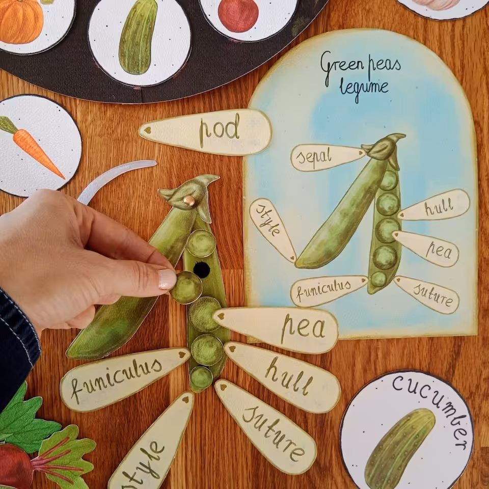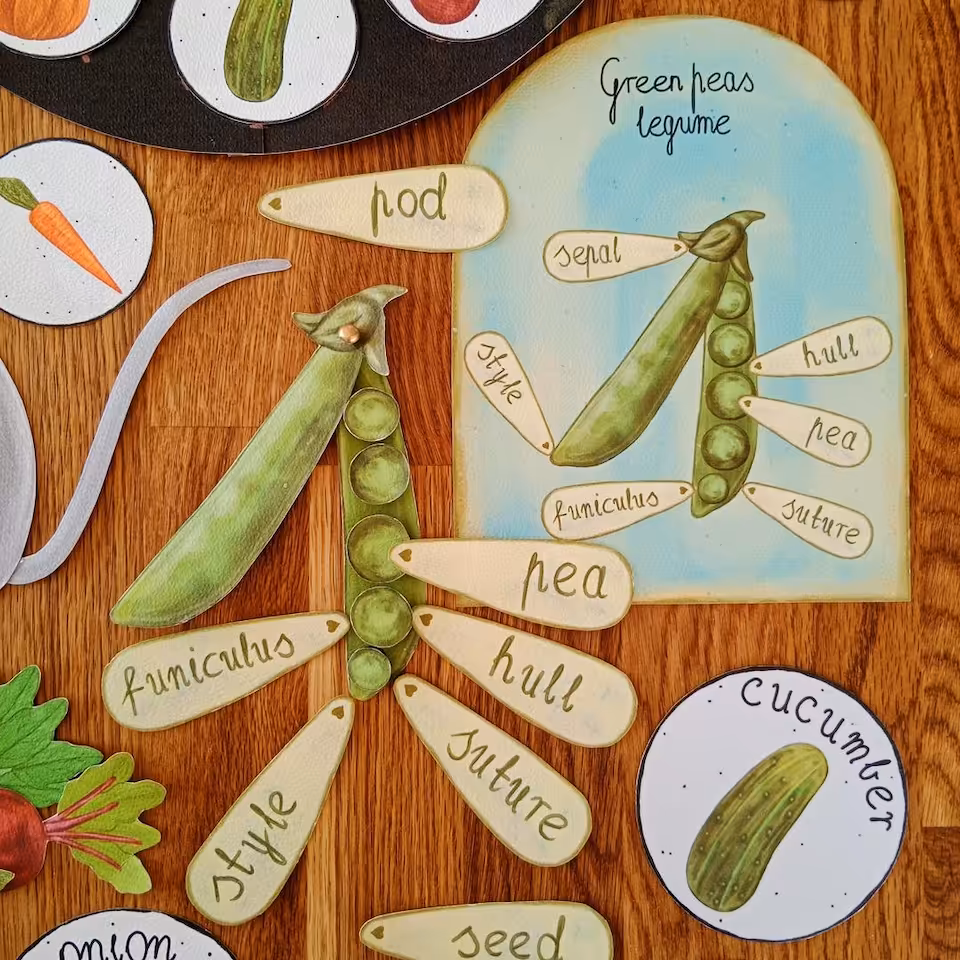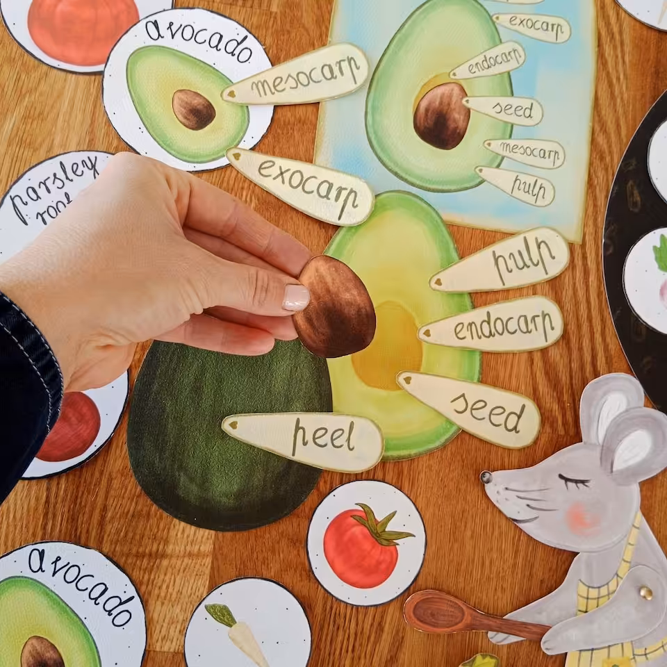 Warzywne Aktywności na każdą porę roku. Pani Anna Mysz i Warzywa. Zabawy Montessori inspirowane naturą. Anatomia zielonego groszku. Anatomia Awokado. Matematyka dla najmłodszych. Pomoce edukacyjne rozwijające kreatywność i zmysły. Nauka języka angielskiego poprzez zabawę, Materiały ręcznie malowane. E-book ❀.